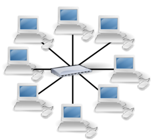 siguen esta topología. El punto o nodo central en estas sería el switch